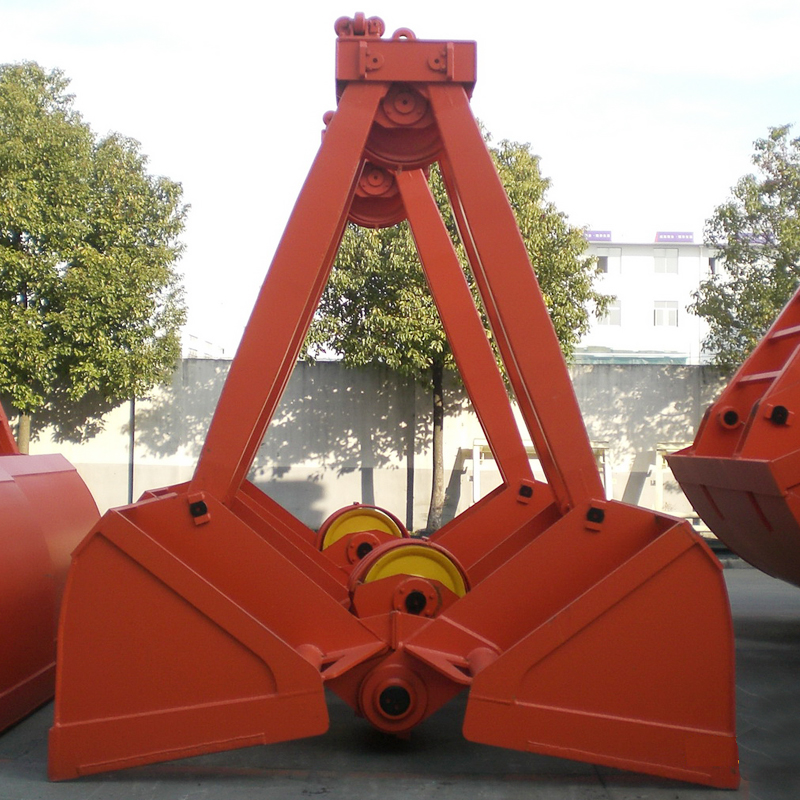 Double Rope Clamshell Grab is equipped for crane, which has two ropes connecting to the grab. The kind of grab is simple structure, convenient operation, which is a kind of efficient tool for loading and unloading granular, small-block bulk cargo, such as coal, sand, mineral powder and bulk chemical fertilizer, and which is suitable to the working site such as port, mine and yard. The lifting capacity of crane is normally below 16t.